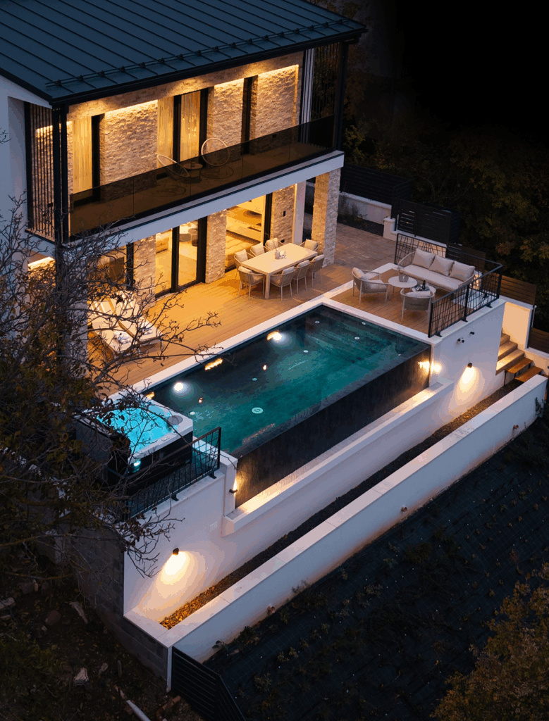 A Villa SLOWAVE nem csupán egy hely, hanem egy állapot: a slow living új dimenziója, ahol a természet, a fény és a terek harmóniája öleli körül az érzékeket. A hatalmas üvegfelületek, a teraszok, a panoráma, a természetes anyagok és a gondosan megkomponált design mind azt szolgálják, hogy az itt töltött idő ne csak pihenés, hanem valódi feltöltődés legyen. Minden pillanat – a naplementék aranyfénye a medence vizén, a jacuzziban gőzölgő víz, a kandalló melege, a tágas terekben zajló beszélgetések – arra hív, hogy lassíts, figyelj, élvezd.