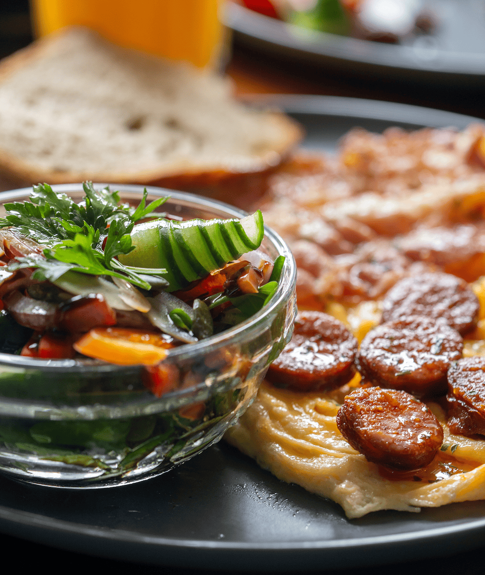 - Választható feltétek rántottához: Tojás, Mangalica sonka, Mangalica kolbász, Bacon, Sajt, Gomba, Hagyma